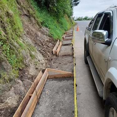 Ejecución de obras de infraestructura vial que incluyeron la construcción de muros de contención en concreto reforzado, muros en gaviones, cunetas en concreto y alcantarillas. Estas intervenciones mejoraron la estabilidad del corredor vial, el manejo de aguas y la seguridad de la vía.