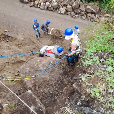 Construcción de cunetas, muros en gaviones y muros reforzados, orientadas a la protección de la vía frente a procesos de erosión y deslizamientos, contribuyendo a la estabilidad y conservación de la infraestructura vial.